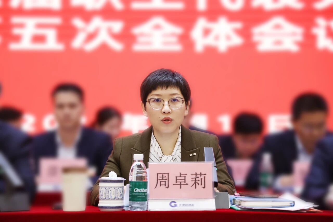 ▲党委书记、董事长周卓莉作了题为《深化提质增效 加速创新转型 汇聚北港新材料高质量发展磅礴力量》的总结讲话。